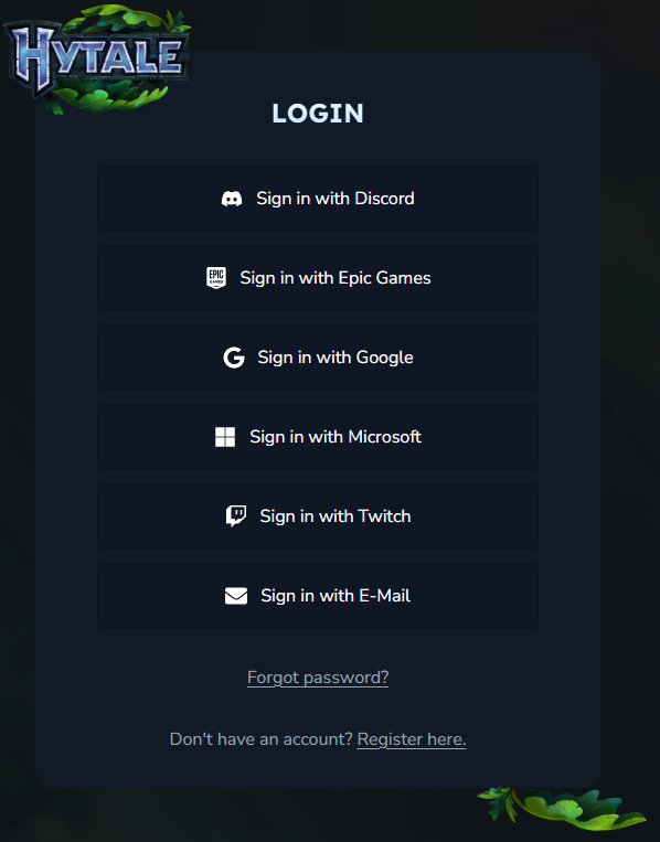 Hytale専用のID管理が行われています。Googleアカウント連携なども可能です。
