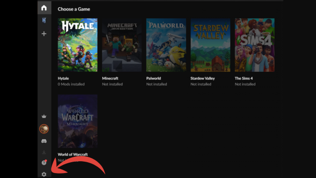 Choose a Gameでゲーム一覧から「Hytale」を選択してModを探せるようになります。これでMODを導入する準備は完了しました。