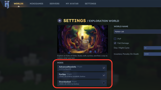 HytaleではMODはWORLDごとに有効・無効の設定ができるようになっています(便利!)WORLD選択画面で右クリックをしてください。