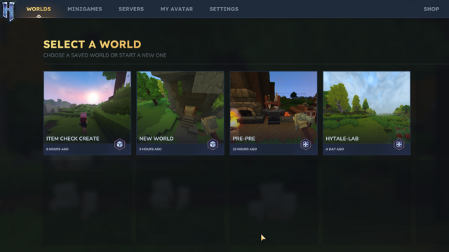 ④Hytaleを起動してワールド選択画面へ