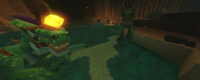 地下ジャングルは、恐竜たちの楽園となっています。Raptor(ラプトル)の群れやTriceratops(トリケラトプス)が生息し、食物連鎖の頂点には巨大なボス級モンスターであるCave-Rexが君臨しています。また、ナマケモノから進化したような知的種族Slothianもこの地下空間に隠れ住んでいます。