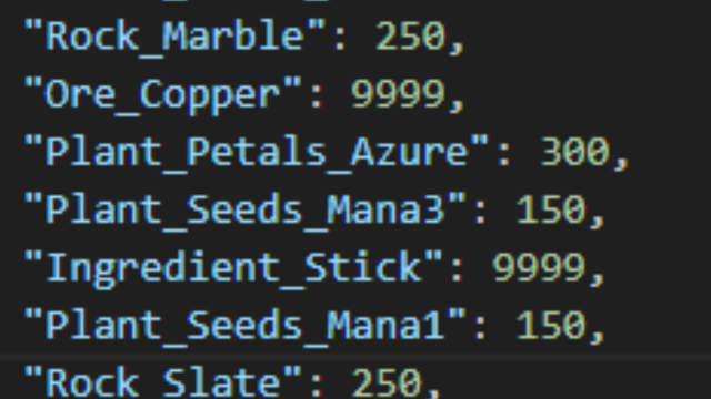 ItemIds セクションでは、アイテムIDと新しいスタック数を直接紐付けます。スタック数は1以上であれば、増やすことも減らすことも可能です。